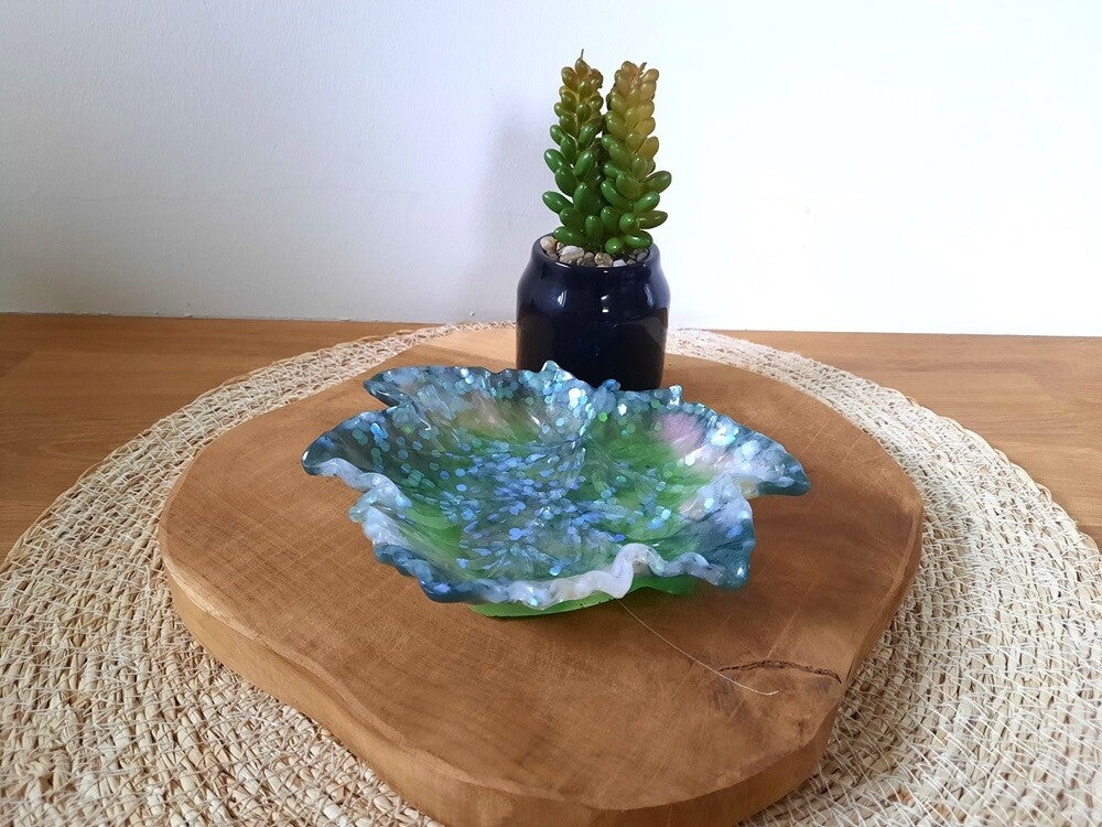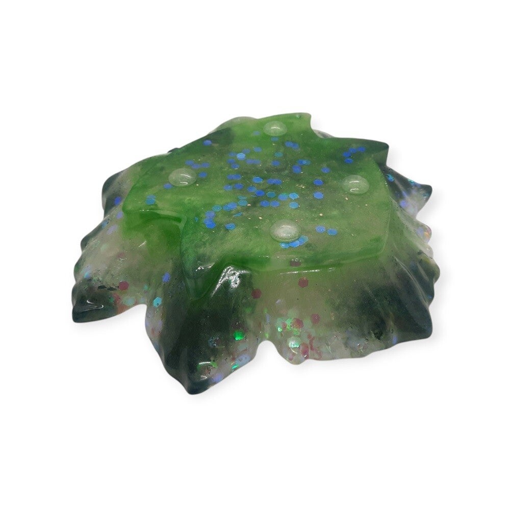Epoxy Schaaltje in Esdoornblad Vorm – Groen, Wit en Glitters