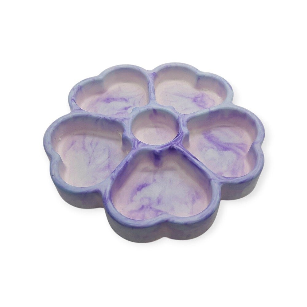 Schaaltje van aquacast in bloemvorm - lila met marmereffect