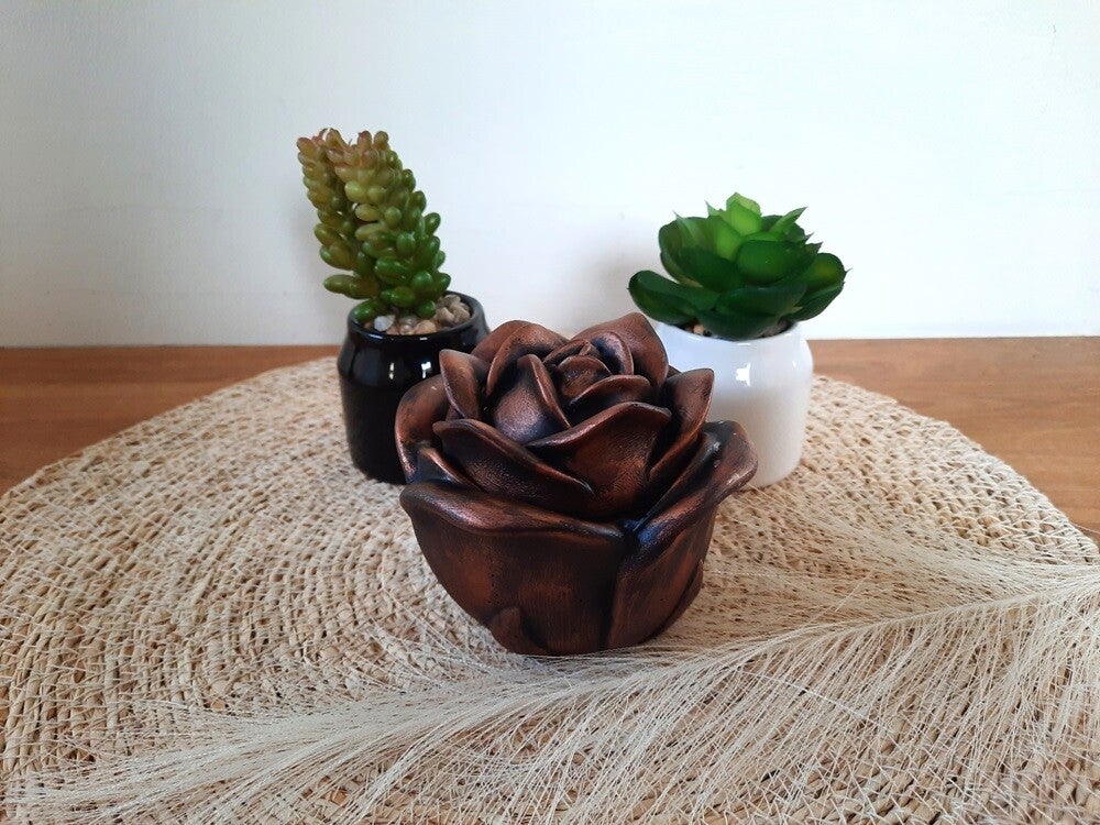 Decoratief potje van Aquacast in de vorm van een roos - bronskleurige gildingwax