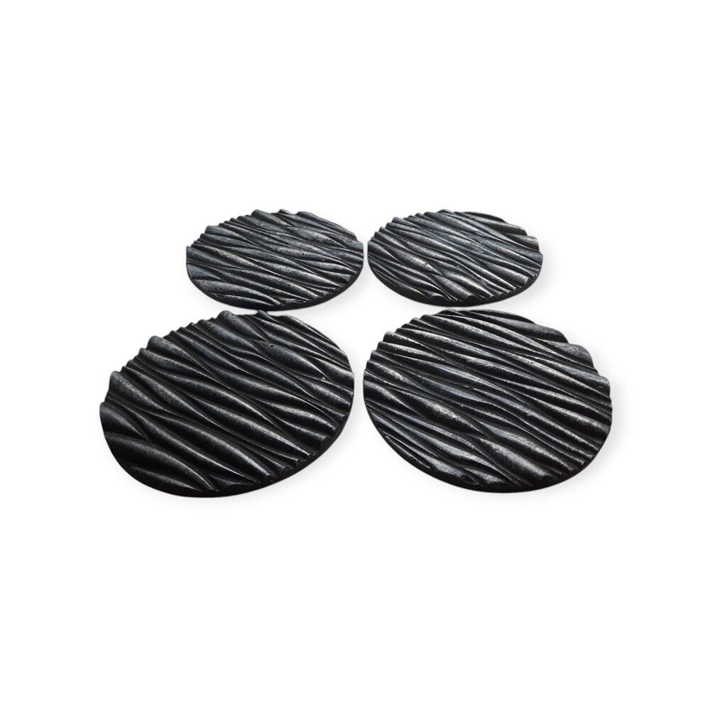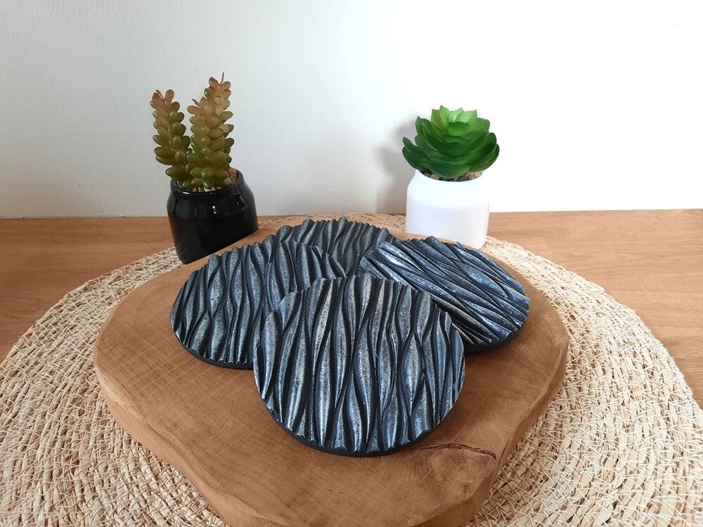 Handgemaakte Onderzetters van Aquacast met Rimpeleffect – Zwart met Zilverkleurige Gildingwax (Set van 4)