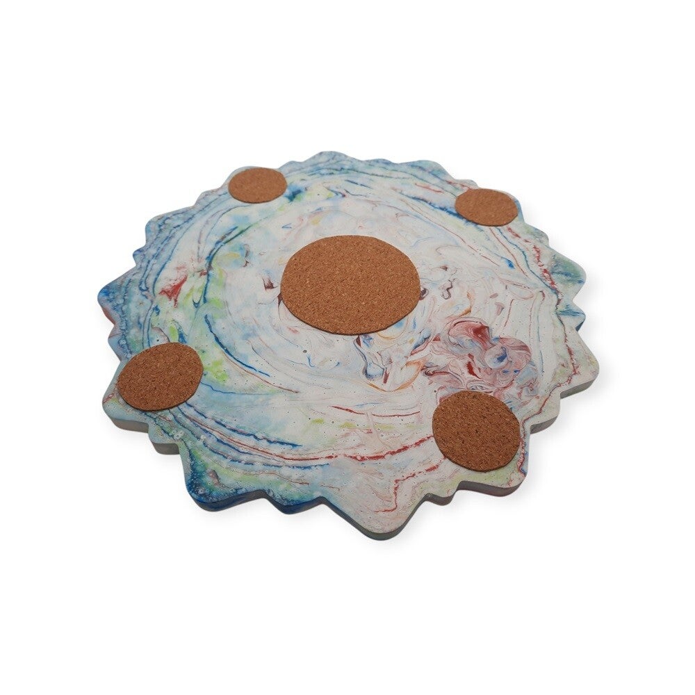 Handgemaakte Decoratieve Set van Aquacast met mandala-patroon – Crème met kleurrijk marmerpatroon