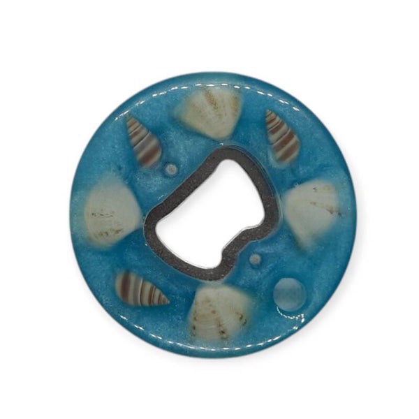 Breng een vleugje zee en elegantie in je dagelijks leven met deze handgemaakte epoxy flessenopener. De prachtige turkooisblauwe tinten, geïnspireerd door helder oceaanwater, vormen een betoverend contrast met de subtiel verwerkte schelpjes. Een unieke combinatie van verfijning en functionaliteit die elke fles met stijl opent.