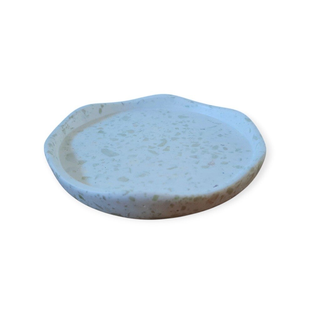 Handgemaakt Schaaltje rond met golvende rand – Crème met groen terrazzo-effect