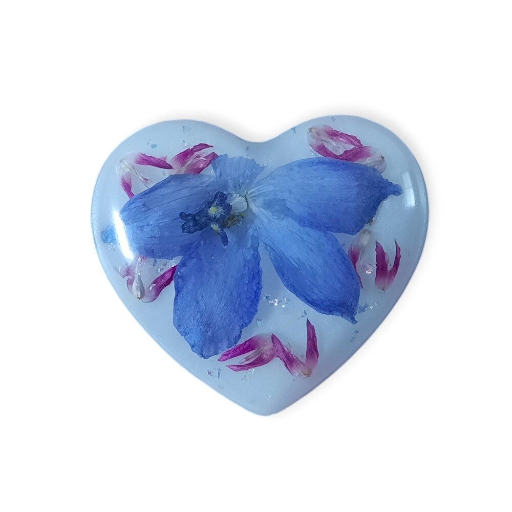 Epoxy Knuffelhart / Gelukshartje – Wit met Blauwe & Roze Droogbloemen