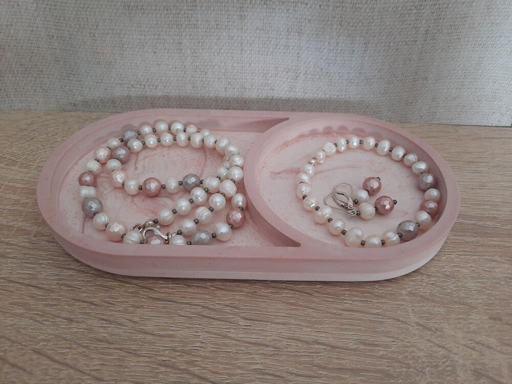 Handgemaakt Plateau ovaal met cirkelaccent – Oud roze met marmerpatroon