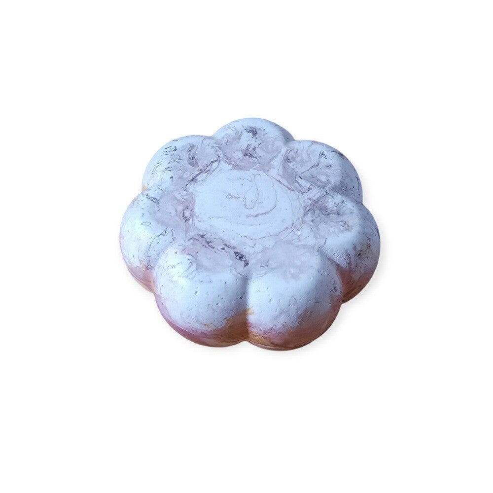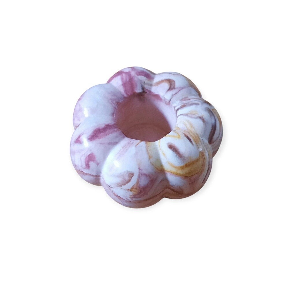 Handgemaakte Kaarsenstandaard – Pompoenvorm met Marmerpatroon in Crème, Roze & Bruin