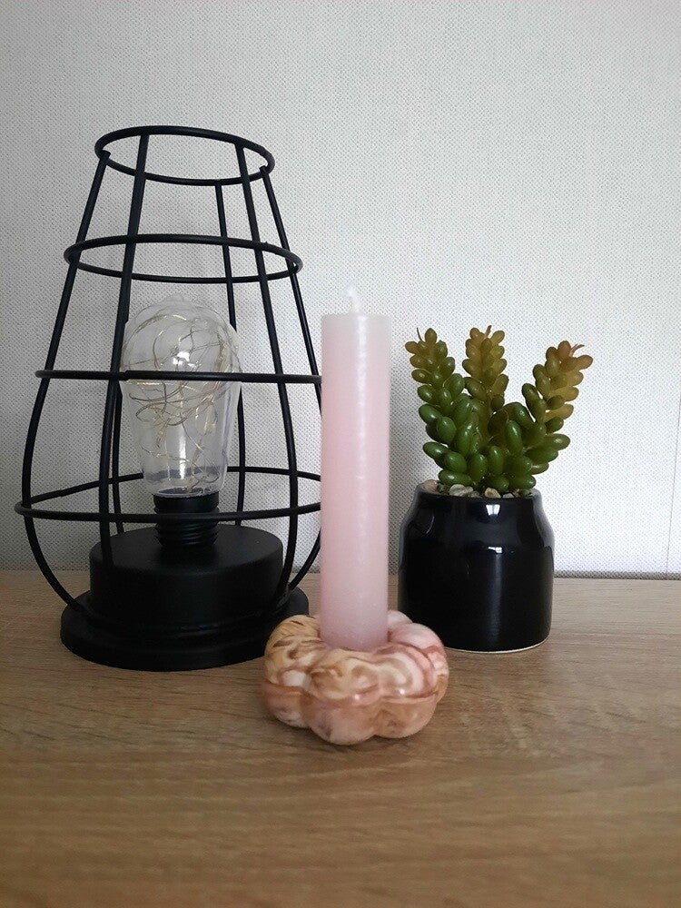 Kaarsenstandaard pompoen - creme, roze en bruin marmerpatroon