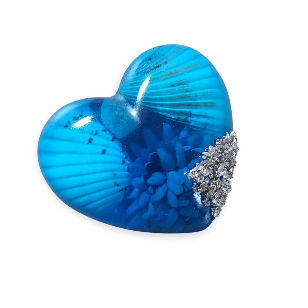 Epoxy hart met schelpen, zijdebloem en glassteentjes - blauw