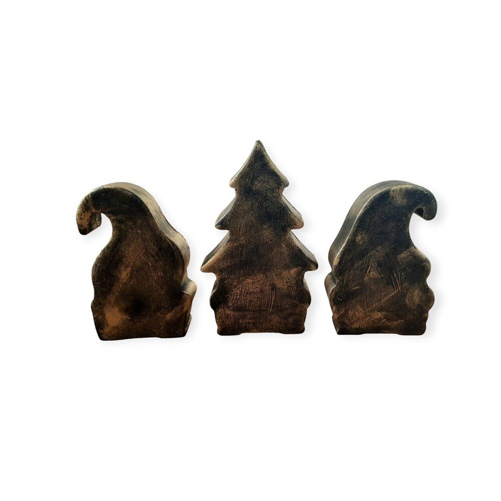 Deze handgemaakte 3-delige kerstset van Aquacast straalt warmte, karakter en feestelijke elegantie uit. De set bestaat uit twee charmante gnomen en een sierlijke kerstboom, emet de tekst “ho ho ho” subtiel verwerkt in het ontwerp. Afgewerkt met zwarte gesso en goud antiek gildingwax, ontstaat een rijke, klassieke uitstraling die perfect past bij een sfeervol winterinterieur.