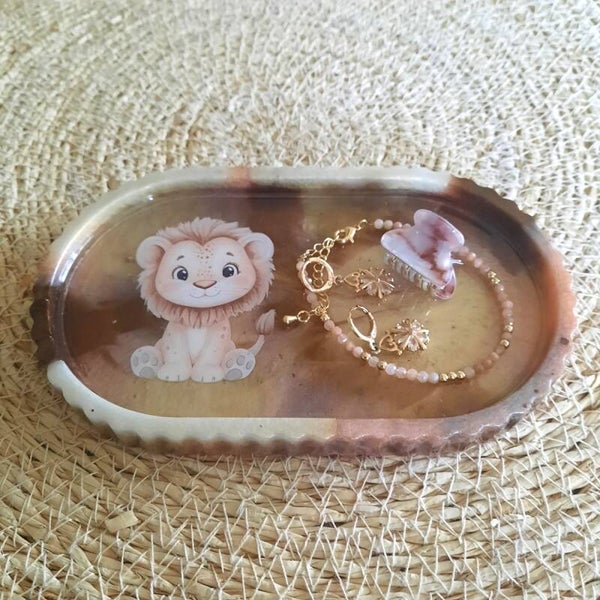 Epoxy Plateau met Babyleeuw – Beige bruin marmerpatroon